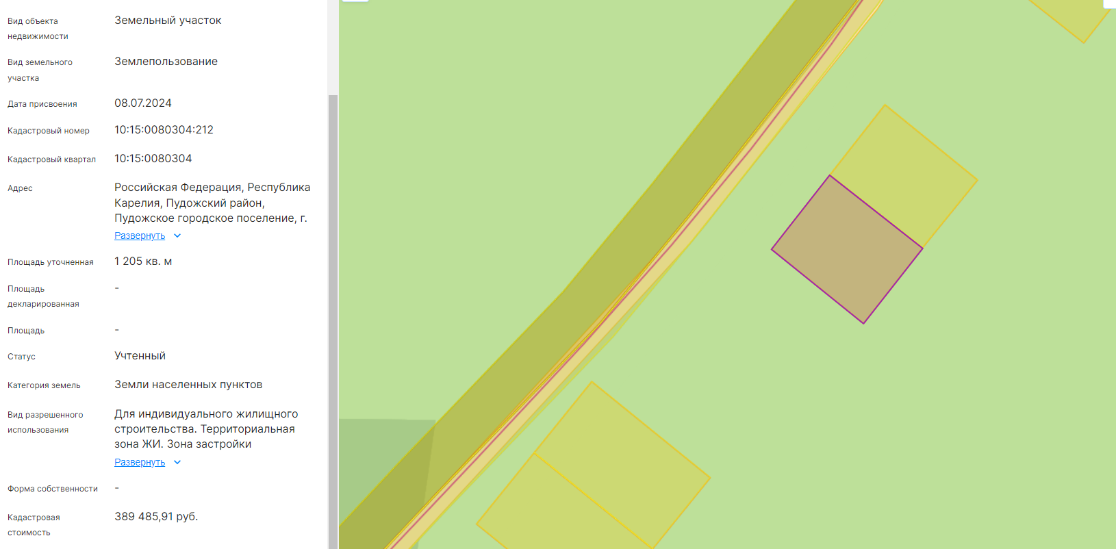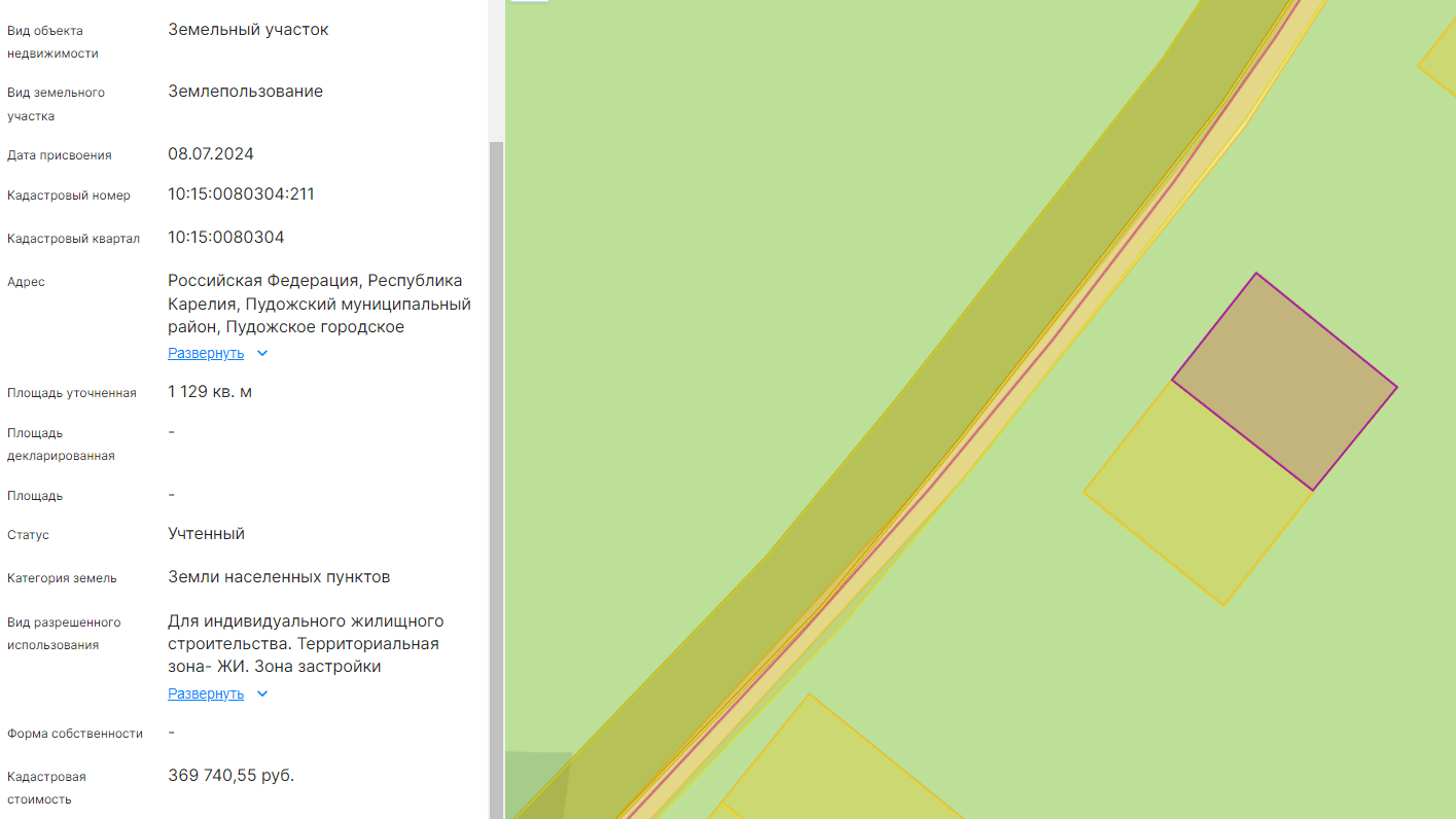 Лот №1. Земельный участок с кадастровым номером 10:15:0080304:211. Площадь 1129 кв. м. Цель использования земельного участка: для индивидуального жилищного строительства. Местоположение: Российская Федерация, Республика Карелия, Пудожский муниципальный район, Пудожское городское поселение, город Пудож.